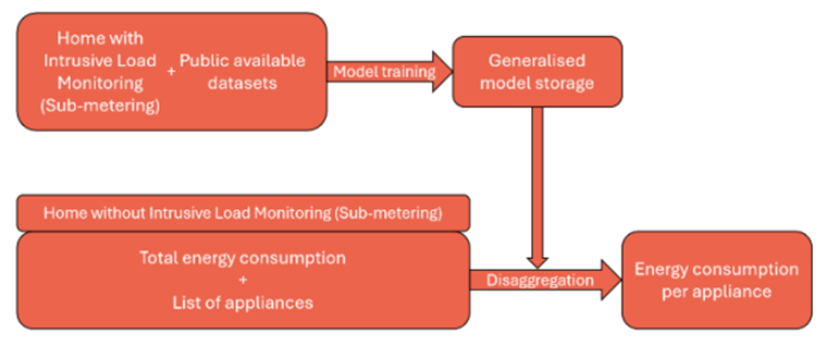 Once the models have been trained, validated, and saved; in order to apply them to a completely new household, it is necessary to have the total energy consumption data of this household and the list of connected appliances to apply each of the models. This way, the disaggregation of the total consumption among all devices can be carried out. In order to clarify the concept of non-intrusive monitoring a little better, we've added the next video.