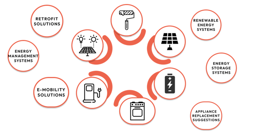 Designed with accessibility in mind, a survey with baseline questions has been considered for each type of solution to simulate household scenarios and aggregate data at the community level, thereby providing tailored plans. These questions are accessible to all citizens, regardless of their energy literacy levels.